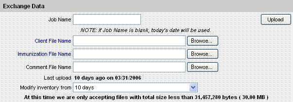 Press the BROWSE button to locate and select the Immunization file you wish to upload.
