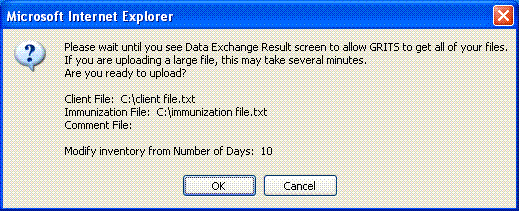 *Note* After pressing the OK button in step #5, it is important to wait until you see the Data Exchange Result screen to allow the Registry time to retrieve all of your files. If you are uploading a large file, this may take several minutes.