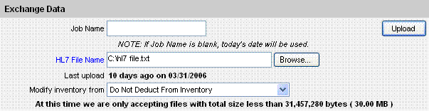 Press the BROWSE button to locate and select the HL7 file you wish to upload.