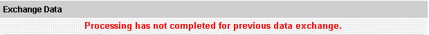 A provider organization is limited to processing ONE data exchange job at a time. The following error screen will appear when a user attempts to submit a data exchange request before another data exchange job has finished processing for the same provider organization.