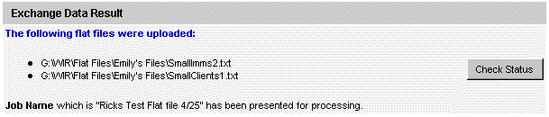 Press the Check Status button to check the processing status of the job; the Exchange Status screen will be displayed.