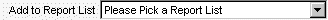 One main piece of functionality in this section is the 'Add to Report List' drop down box. With this drop down box you can select a list you want your student to be added to so you can run a report for that student. Here is what the drop down box looks like:
